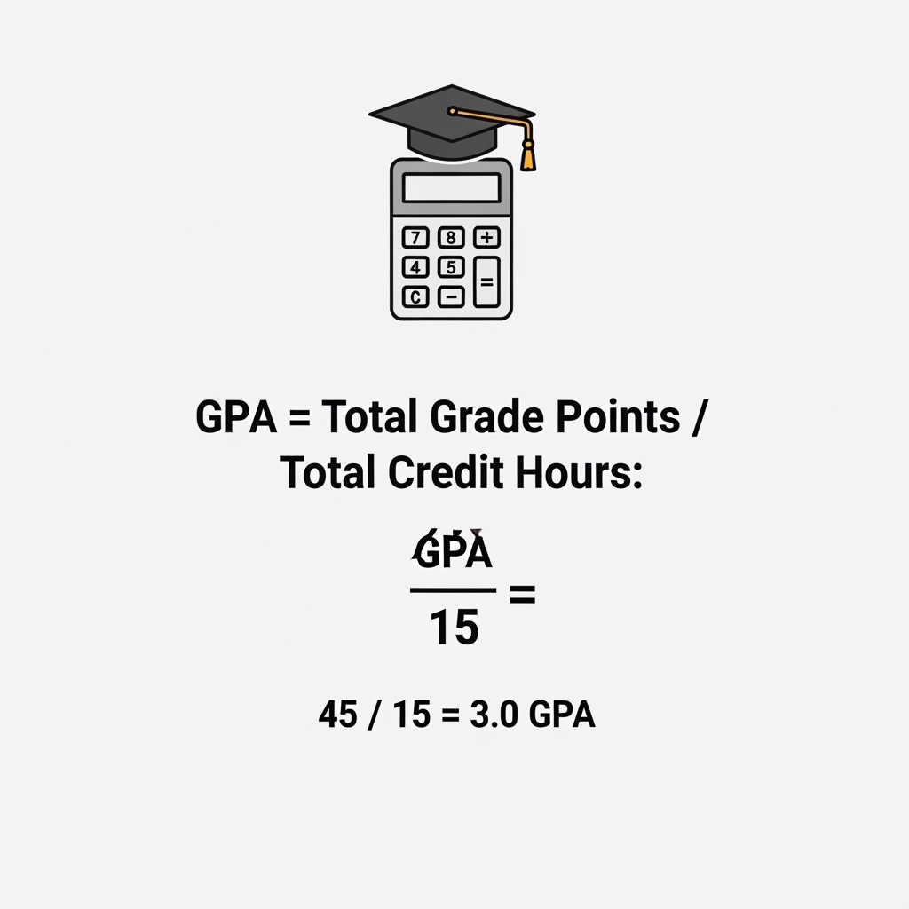 Calculating GPA follows a simple four-step process that works for both high school and college settings. First, convert each letter grade to its corresponding numerical point value using your institution’s official scale. Second, if your school uses credit hours, multiply each course’s grade points by its credit value. Third, add all grade points together to get your total points earned. Fourth, divide that total by the number of courses or total credit hours.